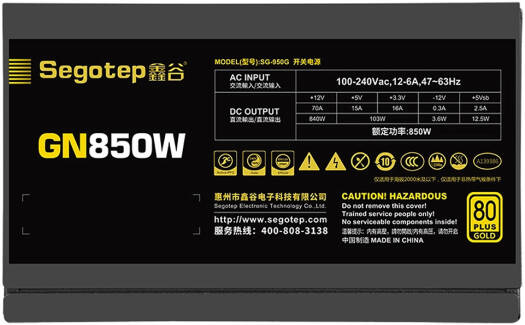Segotep GN850W Non-Modular Power Supply, 850W Power Output, 80 Plus Gold Efficiency, 120mm Hydraulic Bearing Fan, AI Cooler Smart Temperature Control, Active PFC, Black | GN850W 1.3