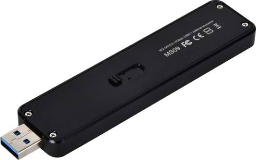 ■ Support 2260 or 2280 form factors of B key M.2 SATA SSD ■ Premium all aluminum exterior with small, pocketable design ■ Latest USB 3.1 Gen 2 interface up to 10Gb/s super speed transfer rate ■ Robust USB Type-A interface and no driver installation required ■ Retractable USB connector design To take advantage of the increased popularity of M.2 solid state drives, SilverStone created the MS09, a premium, pocketable M.2 enclosure. It has an exquisite anodized aluminum exterior with a size that is nearly as small as common USB thumb drives. Internally, it fits M.2 SATA SSD up to 80mm so the MS09 can be used with a wide variety of new or repurposed M.2 SATA SSD from laptops and turning them into high-speed USB flash drive. To make the most of M.2 SATA SSD’s performance, it also incorporates USB 3.1 Gen 2 interface for superfast read / write and excellent compatibility. Lastly, the MS09 is designed to work without additional driver installati