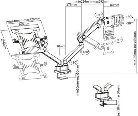 The AWH Aluminum Slim Mechanical Spring Monitor Arm offers a sleek and functional solution to optimize your workspace setup. Designed to accommodate a wide range of monitors, from 17 to 32 inches, ensuring versatility for various work or entertainment needs. Maximize your productivity by utilizing the built-in laptop holder, conveniently placing your laptop screen alongside your monitor for seamless multitasking. Clear up valuable desk space by mounting your monitor and laptop off the surface, creating a clean and organized environment. Enjoy customizable viewing angles with the mechanical spring system, allowing you to tilt, swivel, and rotate your monitor and laptop with ease.