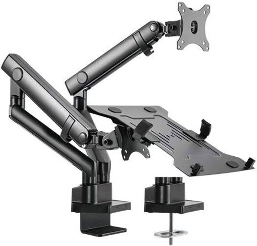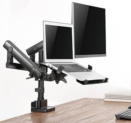 Skill Tech Aluminum Slim Mechanical Spring Monitor Arm with Integrated Laptop Holder, Suitable for 17 to 32-Inch Displays