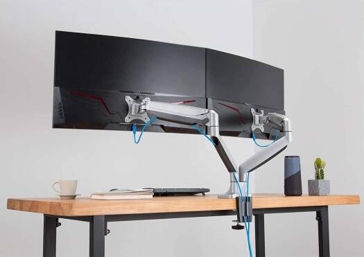 Skill Tech Premium Aluminum Gas Spring Monitor Mounting Arm Dual Heavy Duty Holds 13" to 32" Screens, Up to 19.8 lbs Each, VESA 75×75 or 100×100, Dual