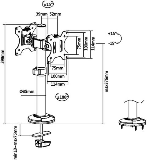 | Swivel Range | +15° ~ -15° |