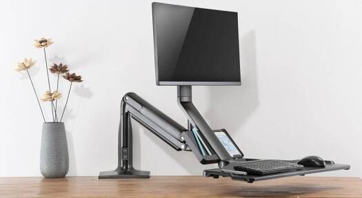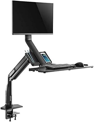 Skill Tech Sit-Stand Workstation Desk Mount, Height Adjustable, Single Monitor with Keyboard Tray, Monitor Riser, Compact 17″-32″ Black | SH S21C01