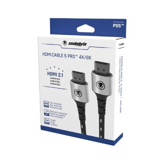 Snakebyte Pro 5 4K/8K HDMI Mesh Cable, Compatible With 1080p / 3D / 4K / 8K UHD Devices, 2 Meter Length, PS5 Console Design, Variable Refresh Rate, Black – Gray | SB916137