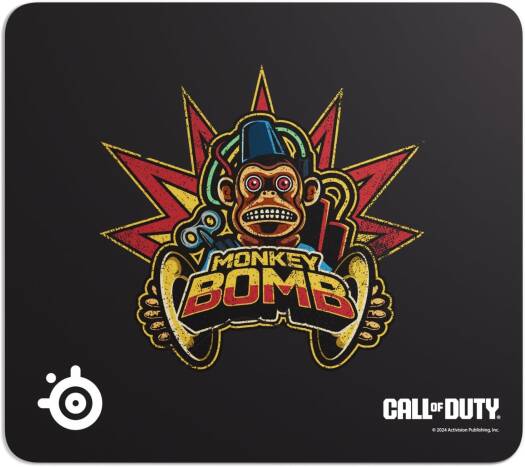 QcK L x Call of Duty®: Monkey Bomb Edition Maker of best-selling gaming mousepads, SteelSeries, created this Call of Duty Limited Edition item, showcasing the iconic Monkey Bomb. With over 10 million sold, the SteelSeries QcK is the does-it-all surface, empowering gamers around the world and champions on the biggest esports stages. Tested by the top mouse sensor manufacturer, the high thread count and smooth surface optimize mouse tracking accuracy. The durable, non-slip rubber base is designed to eliminate unwanted movement and provides a solid platform for competitive gaming. Measuring 2mm thick, the QcK L provides the ideal balance for all your gaming needs, ensuring just the right level of comfort.