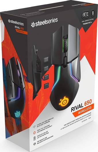 SteelSeries Rival 650 Quantum Wireless Gaming Mouse 12,000 CPI TrueMove3+ Dual Optical Sensor 8 Zone RGB Lighting | 62456