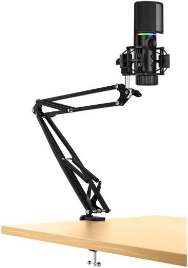 MIC ARM RGB Microphone With Mounting Arm RGB Microphone with a mounting arm that allows for fully adjustable and flexible positioning. Cardioid pickup pattern perfectly captures your voice while blocking out unwanted noise from the sides and rear. Features 2 audio playback modes, Full Playback Podcast Mode and One-way Playback Gaming Mode, to suit your needs no matter what type of content you’re creating. Features 2 Audio-out Modes – Featuring full playback podcast mode and one-way playback gaming mode, MIC ARM is ideal for live streaming, gaming, audio recording, podcasting, and more. Quick Mute Function – Convenient mute button with LED indicator allows you to rapidly cut off the voice recording. Stylish RGB Lighting – Personalize stylish and dynamic RGB lighting effects to fit your desired mood and vibe. Pop Filter – Reduces popping sounds while blocking plosive sounds, air blasts, and wind interference from hitting the mic.