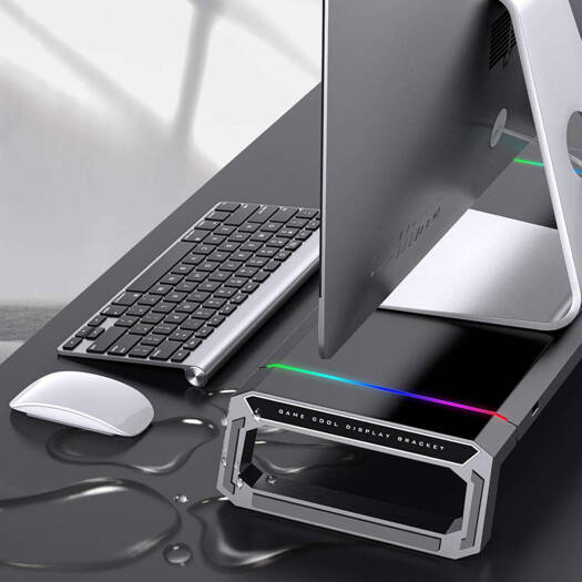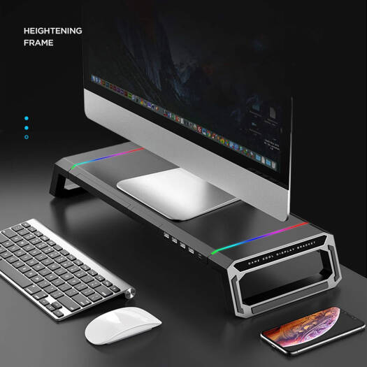 T1 Monitor Stand Riser, Heightening Frame, 30kg Maximum Load, 9 RGB Lighting Effects, Foldable, Light Control Key, 4x USB 3.0 Ports Hub, Black | T1