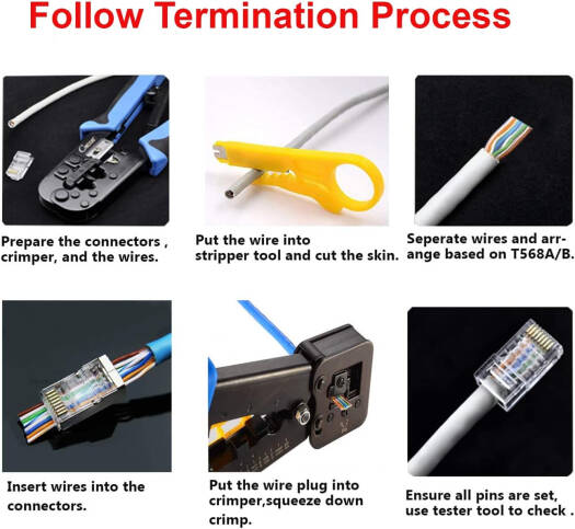 RJ45 Pass-Through Connectors The Pass-through Design of these Connectors Allows the Wires to Pass all the Way Through the Connector Before Being Terminated, which can Help to Reduce the Amount of Untwisting and Arranging of the Wires that is Required. This can make the Termination Process Faster and more Accurate, which can be particularly useful for Individuals or Organizations that Need to Terminate Large Numbers of Cables.
