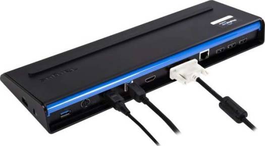 A fast and simple “One Touch” USB connection from laptop to work space peripherals at USB 3.0 Superspeed. Delivering superb picture quality for up to two external screens without any picture distortion or delay at a resolution up to 2048 x 1152. 6 USB ports – 2x USB 3.0 and 4x USB 2.0 – two powered USB 2.0 ports are always on even when the laptop is disconnected. The unique built-in power charger supports most 90W laptops and multiple power tips conveniently store inside the dock. The Dual Video Dock also includes a Gigabit Ethernet port, Audio In/Out ports to connect speakers and a security lock slot to secure the dock. Perfect for hot desk environments and suitable for Gigabit Ethernet networks. Universal USB 3.0 Superspeed connection – 2ft / 60cm cable Supports up to 2 external screens up to 2048 x 1152 resolution Dual video ports (DVI-I & HDMI) Built in power 90W @ 19.5V charging, 8 power tips included 6 x USB Ports – 2 x USB 3.0, 2 x Powered USB 2.0 & 2 USB 2.0 ports Audio In/Out; Security Lock Slot; Horizontal wedge design Gigabit Ethernet port 6.15A AC adapter System Requirments Windows® 10, Windows®