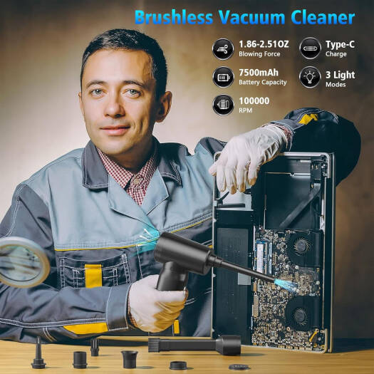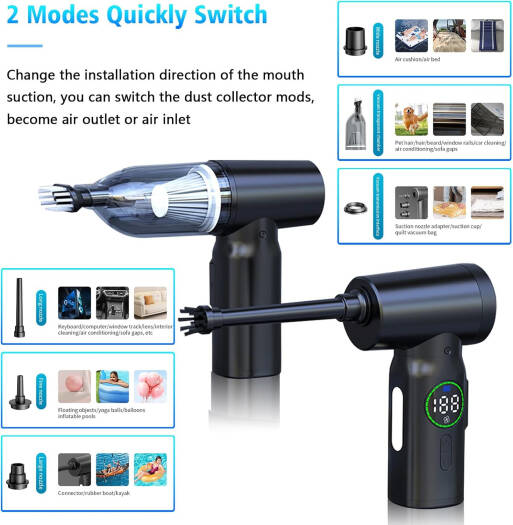 3 In 1 Electric Compressed Air Duster 3 In 1 Portable Handheld Vacuum Cleaner & Electric Compressed Air Duster With Light
