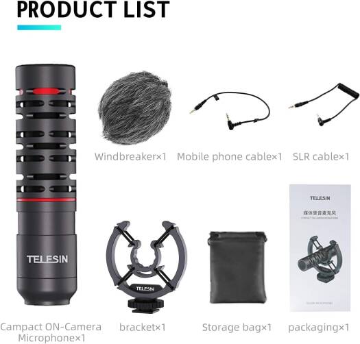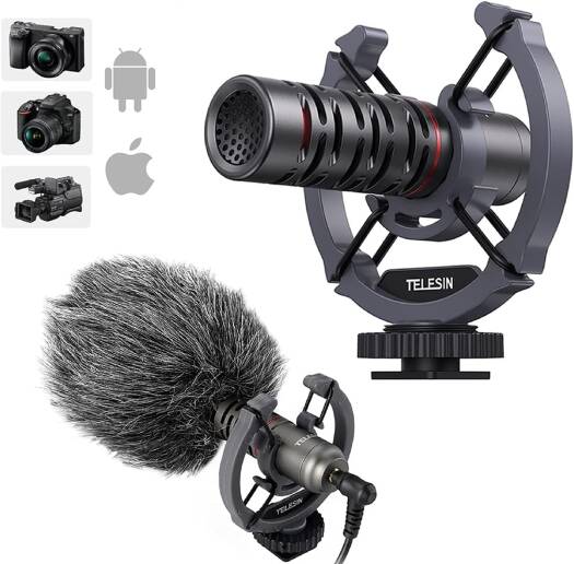 TELESIN Universal Compact On-Camera Microphone, External Mic Shotgun for GoPro, DLSR, iPhone, Andriod, Smartphone, Vlogging, Canon/Nikon/Sony Camera Camcorder