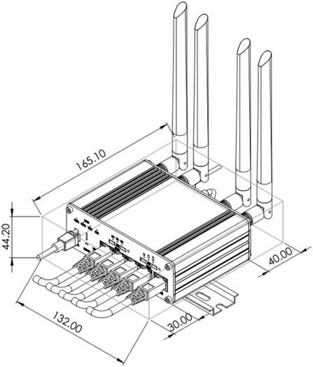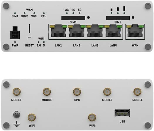 | Antennas | 4 x SMA for Mobile, 2 x RP-SMA for WiFi, 1 x SMA for GNSS |