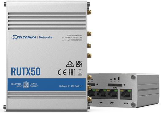 Teltonika RUTX50 5G Router Dual Sim, WiFi 5, LTE CAT 20, 3.3 Gbps Speeds, Up to 150 Clients, SA & NSA Architectures, Low Latency. | RUTX50