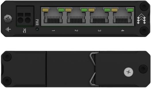 Teltonika TSW304 4-port Compact Unmanaged Switch with Integrated DIN Rail Mount, 4 x Gigabit Ethernet, Speeds Up to 1000 Mbps, 2 Pin Industrial Power Socket, IP30 Rated, Black | TSW304