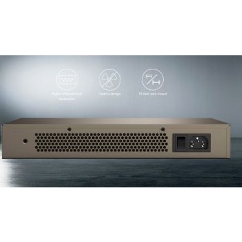OVERVIEW Stable connection for 7*24 16*10/100/1000 Mbps auto-negotiation RJ45 ports, up to 2000 Mbps of full duplex transmission rate, line-speed forwarding by all ports, and large cache capacity ensure the timely transfer of large files and stable streaming video. Stay connected for 7*24. Excellent lightning protection of ports Professional integrated lightning protection circuit enables all the 16 ports to provide IV-class (6 kV in common mode) lightning protection, effectively decreasing the damage rate to the ports by lightning surge. Professional lightning protection for power supply SKU: SKU-DF5AF0D2 Category: Switches Brand: Tenda