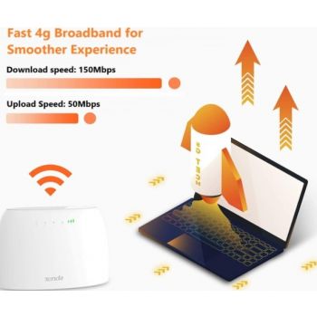 Tenda 4G03 3G/4G LTE N300 Wi-Fi Router, Parental Control, Connects Up to 32 Devices, 2.4GHz 300Mbps Wifi Speed, 802.11b/g/n, Single Band | 4G03
