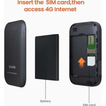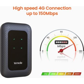 4G180 4G LTE-Advanced Pocket Mobile Wi-Fi Hotspot What it Does Tenda 4G180 Mobile Wi-Fi is a high-speed packet access mobile hotspot. It is a multi-mode wireless terminal for SOHO (Small Office and Home Office) and sightseer. Main Features Enjoy hassle-free Internet via 4G; Secured Network in Your Pocket; Rechargeable battery lasts up to 10 hours Elegant and compact shape; Play&Plug,no need configuration