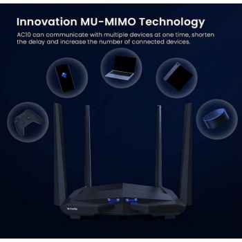 Tenda AC10U Smart Gigabit AC1200 Wi-Fi Router, Dual Band, Parental Control, MU-MIMO, USB Port, 1200 Mbps, 4 LAN Ports | AC10U