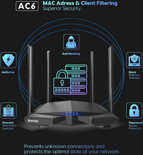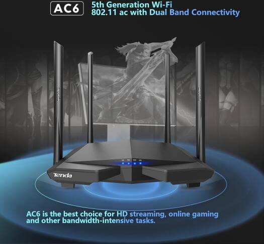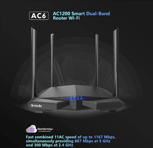 Tenda AC1200 Dual Band Wi-Fi Router, High Speed Wireless Internet Router with Smart App, MU-MIMO for Home, Black | AC6