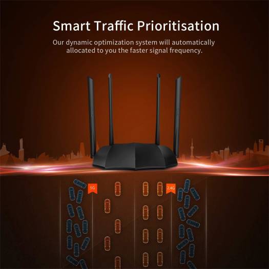 Document .box-font { font-weight: 600; } div>span:nth-of-type(2){ font-size: 14px; } ul{ margin: 0px; } li{ font-size: 14px; } h3{ margin-bottom:0px; } Standard&Protocol: IEEE802.3ï¼IEEE802.3uï¼IEEE802.3ab Interface: 1*10/100/1000Mbps WAN port,3*10/100/1000Mbps LAN ports Antenna: 4*6dBi external dual band antennas Data rate: 5GHz/867Mbps,2.4GHz/300Mbps Frequency: Simultaneous dual band 2.4 & 5GHz Wireless Security WPA-PSK/WPA2-PSK, WPA/WPA2,Enable /Disable Button: 1*WPS/Reset button Power: Input:AC 100-240V”50/60Hz Output:DC 9V 1A Internet Connection Type: PPPoE, Dynamic IP, Static IP,Support automatic access detection,Supports broadband account automatic transfer Operating Mode: Wireless Router Mode,AP Mode,Universal Repeater mode,WISP Mode DDNS DHCP Server DHCP Client List DHCP Reservation Default Settings: tendawifi.com or http://192.168.0.1 Function:Broadband managementMAC address cloneStatic RoutingSystem LogFirmware upgrade from localHow's the customer service3 years product warranty24/7 Customer Support: If you have further questions about this product or want to clarify a technical detail before you purchase please call 0800 041 8955 or email support.uktenda.cnPackage ContentWireless RouterGigabit Ethernet CablePower AdapterInstallation Guide