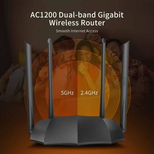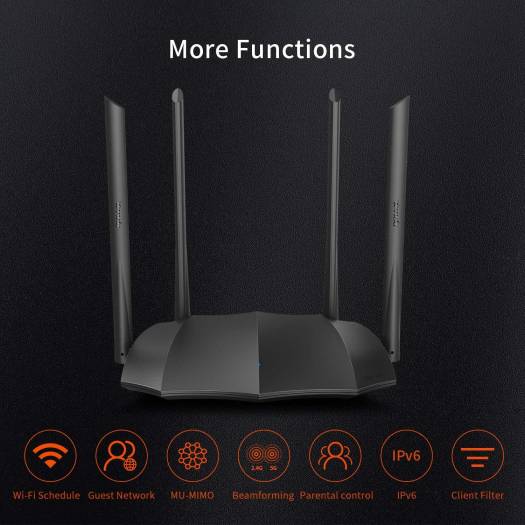 Tenda AC8 Router WiFi AC1200 – Dual Band 5GHz/2.4GHz, 4xWAN/LAN Gigabit Ports, 4x6dBi Antennas, AP Mode, Beamforming, MU-MIMO, APP Control, IPv6, WPS