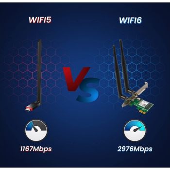 Wi-Fi 6 for A New Wi-Fi Experience E30 is a Wi-Fi6 PCIe adapter , provides higher transmission rate, lower latency and better energy saving, Via 5dBi antennas over the 2.4 GHz and 5 GHz bands for PC. AX3000 Dual Band Wi-Fi for Smooth Connection Supporting 1024QAM and 160MHz channels, the 5GHz wireless rates up to 2402Mbps, 2.4GHz wireless rates up to 574Mbps. With Tenda E30 you can enjoy smoother 4K movies, VR games, and large file extremely transfers.