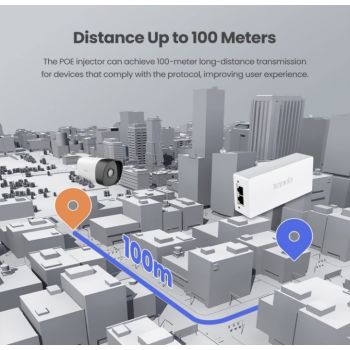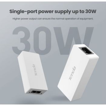 Tenda Gigabit PoE 30W RJ-45 Adapter/Injector, IEEE 802.3at/af Compliant, Distance Up to 100 Meters/328 Feet, 1000Mbps, Plug & Play, UL Certified, White | PoE30G-AT