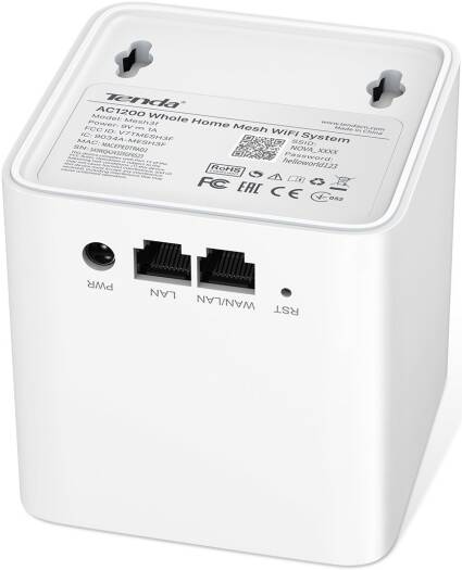 Tenda Nova MW3 Mesh Router Wi-Fi System Specification Category Specification Standard & Protocol IEEE 802.3, IEEE 802.3u, IEEE 802.4ab Ethernet Interface 2 x 10/100Mbps RJ45 ports per node Antenna 2 x Internal antenna Button 1 x Reset Button Power Input: 100-240V—50/60Hz, 0.3A; Output: 9V1A Dimension 90 x 90 x 90mm (3.54 x 3.54 x 3.54 in.)