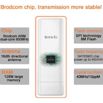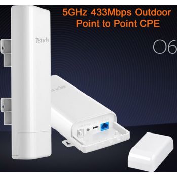 TENDA O6 433 Mbps Outdoor Long Range Access Point, Up to 10 KM, 5Ghz Frequency Range, 9W Maximum Consumption, 24v 0.5A PoE Injector, White | O6