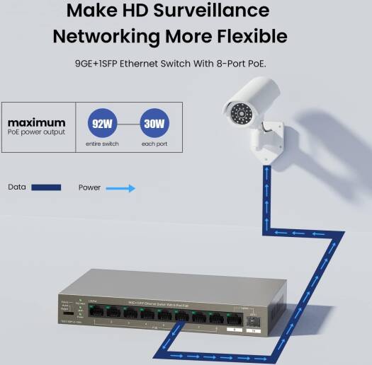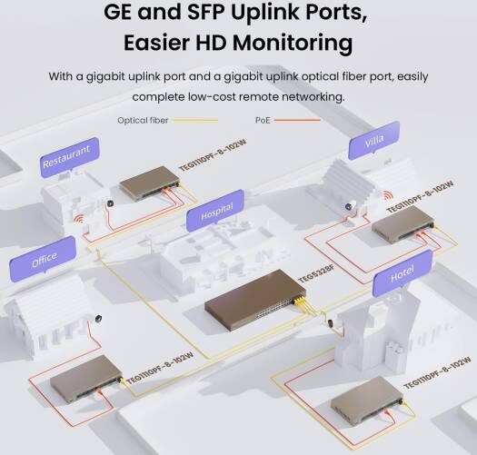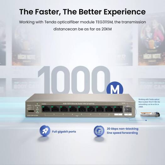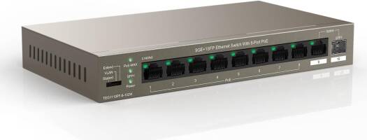Tenda PoE Switch 10 Port Gigabit Ethernet Unmanaged Network Switch with 8-Port PoE+ (Uplink & SFP-Port, 92W, VLAN, 250m Transmission distance, Plug and Play) | TEG1110PF- 8-102W