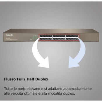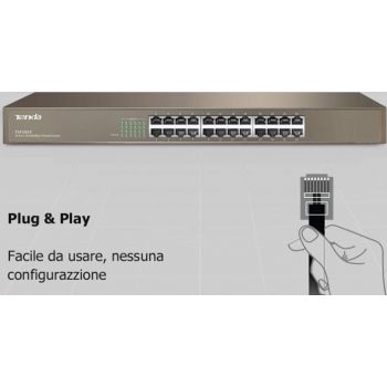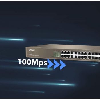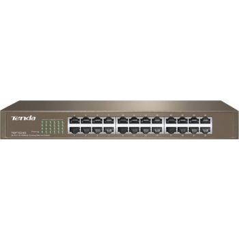 Space-saving Design for The switch is solidly housed in a compact and slim metal case that is easy to position on any flat surface with limited space like desktop or mount into a rack. Plus, the device features an internal high performance switching power supply. What It Does The Tenda TEF1024D 24-Port 10/100 Switch is specially engineered to provide simple solution to expand SMB networks and campus networks at the best possible cost. Connect this 24-port switch to a router and add up to twenty three more computers or other Ethernet-based devices such as a printer, Network-Attached Storage (NAS), or Internet camera to increase the functionality of your network. Housed in sturdy metal case, it is ideal for years of dependable use. <