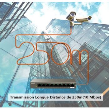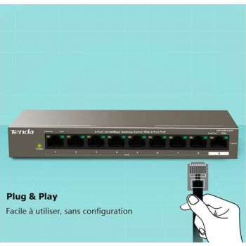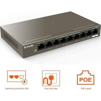 Tenda TEF1109TP 8-Port 10/100Mbps +1Gigabit PoE Switch, 92W PoE Budget, 6KV Lightning Protection, 250m Transmission, Plug and Play | TEF1109TP-8-102W
