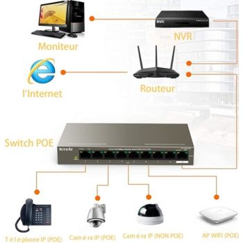 TEF1109TP-8-102W is an 8FE+1GE Desktop Switch With 8-Port PoE developed by Tenda. It provides 8 10/100M RJ45 ports and 1 gigabit port, Ports 1-8 support IEEE 802.3af PoE standard with each port providing power of 15.4W, or support IEEE 802.3at PoE+ standard with each port providing power of 30W. The whole device can provide power of up to 92W. By using CAT5e twisted pairs, it can provide power and data transmission to APs, IP cameras, IP phones, and so on. In addition, uplink port supports lightning protection of 6kV and Ports 1-8 support long distance data transmission and powering of 250m, which decreases deployment difficulty and time thus decreases cost. Born for Small and Medium-sized HD IP Surveillance Projects The Gigabit Uplink Port To Guarantee the Transmission Smooth and Stable It provides 8 10/100M RJ45 ports and 1 gigabit port. By using CAT5e twisted pairs, it can provide power and data transmission to APs, IP cameras, IP phones, and so on, fully loaded. SKU: SKU-E5C6E0F8 Category: Switches Brand: Tenda