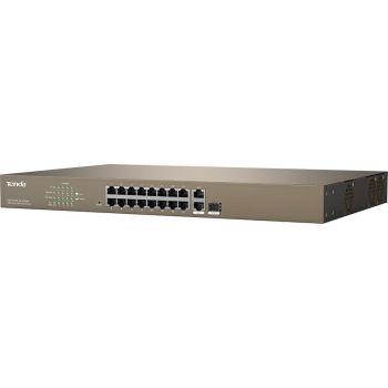 Tenda TEF1218P 16-Port 10/100M + 2-Port Gigabit + 2 SFP Combo PoE Web Smart Switch, 6KV Lightning Protection, 250W Power Supply, 7.2 Gbps Capacity, 1.25Mb Buffer | TEF1218P-16-250W