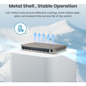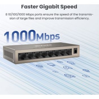 Tenda TEG1008M 8-Port Gigabit Switch, 8*10/100/1000 Base-T, 16Gbps, 9-12V DC Input, <5W Power | TEG1008M