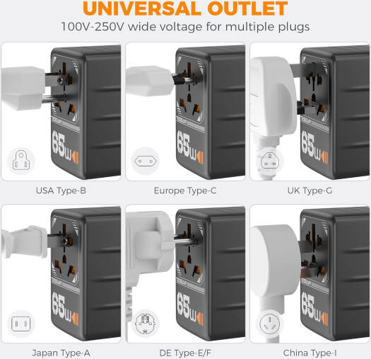 Universal Travel Adapter International Travel Adapter: This travel adapter covers over 200 countries: France, Germany, Italy, Spain, Iceland, Greece, Israel (Type C ); UK, Ireland, London, England, Scotland, Dubai (Type G); China, Australia, New Zealand (Type I); USA, Japan, Canada (Type A), and more; ideal for your worldwide travel or business trip