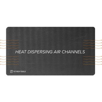 The Aero ProPad for the Tether Table Aero system is an easy-to-use, cushioned, specially-formulated memory foam material that keeps the Aero Table, and the gear on it, from slipping or scratching. The pad returns to its original shape and thickness, even after being clamped or pressed. The wave-channeling disperses heat generated by your laptop computer though embedded air channels. When you’re not using it with your Tether Table Aero, the Aero ProPad also acts as a great way to safely store your lenses. Suggested Uses: Keep your laptop from slipping Protect your gear and your table from getting scratched Keep your laptop cool Extend the value to safely store your camera lenses or as a heat dispersing desk pad for your laptop