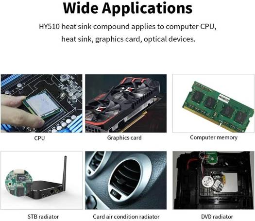 Thermal coupling of electric/electronic devices to heat sinks High conductivity; stable at high temperature Eliminate any risks of causing short circuit Dissspate effectively of CPU or GPU Easy to apply and avoid voids between CPU and cooler Product description The thermal compound paste is made of high quality. Its outstanding performance on the CPU GPU LED will meet your high standard demand for cooling system. Specification: Type: Silicone fluid Physical form: Grease-like Item size: 17.3 * 3.7 * 2.5cm / 6.81 * 1.46 * 0.98in(L * W * H) Item weight: Approx.38g / 1.34oz <span class="a-text-bold" style="font-size: 16px