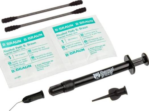 The Conductonaut liquid metal thermal paste was developed for applications with high efficiency. The Conductonaut is recommended as a top product for experienced users who are looking for a solution with the best heat dissipation in the temperature range of over 8 ° C. The Conductonaut liquid metal thermal paste was developed for applications with high efficiency. The Conductonaut is recommended as a top product for experienced users who are looking for a solution with the best heat dissipation in the temperature range of over 8 ° C. Ultra high thermal conductivity Increased proportion of indium Optimal application thanks to plastic needle Thermal Grizzly Conductonaut is a liquid metal thermal compound based on a eutectic alloy. Thanks to a special mixing ratio of tin, gallium and indium, among others, a very high thermal conductivity is achieved. We recommend applying Conductonaut to nickel-plated copper as this offers the best long-term stability. Thermal conductivity 73 W / mk viscosity 0.0021 Pas density 6.24g / cm3 temperature 10 ° C