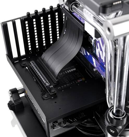 Thermaltake PCI-E 4.0 Dual 130mm 90 Degree Riser Cable, Up to 16Gbps Data Transmission Rate, Dual-90 Degree Connecters, EMI Shielding, Black | AC-071-CO1OTN-C1