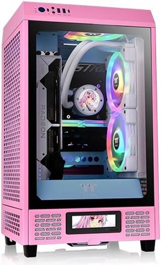 Thermaltake The Tower 200 Bubble Pink Mini Computer Case, SPCC+Tempered Glass Material, Supports Up to 280mm Radiator, Up to 4 Fans Support, Removable Dust Filter, Bubble Pink | CA-1X9-00SAWN-00