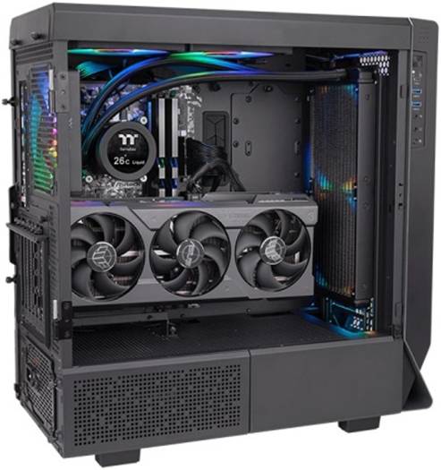 TOUGHLIQUID Ultra 280 RGB All-In-One Liquid Cooler TOUGHLIQUID Ultra 280 RGB is equipped with a 2.1 rotational LCD Display for distributing video, photos, or even local weather and time; this fancy all-in-one liquid cooler can bring PC customization to the next level. By adding the gorgeous TOUGHFAN 14 RGB fans to this product, excellent cooling performance and more personalization options are there for you to grasp. CUSTOMIZED LCD –Explore a variety of image formats including animated GIF, MP4 videos and system monitoring features built-in with the TT RGB PLUS software suite to bring great visual aesthetics and highly customizable functions to your All-in-One cooler. A 2.1 Inch Rotational LCD Display that presents real-time information with 480×480 resolution. TOUGH RGB PERFORMANCE – Included TOUGHFAN RGB 140mm fans offer a high static pressure design with fan speeds from 500 ~ 2000 and deliver up to 119.1CFM of maximum airflow back by glorious addressable RGB lighting with an entire software suite waiting for your control. COPPER WATER BLOCK – Copper base cold plate accelerates heat conductivity with a reliable pump enabling maximum wat