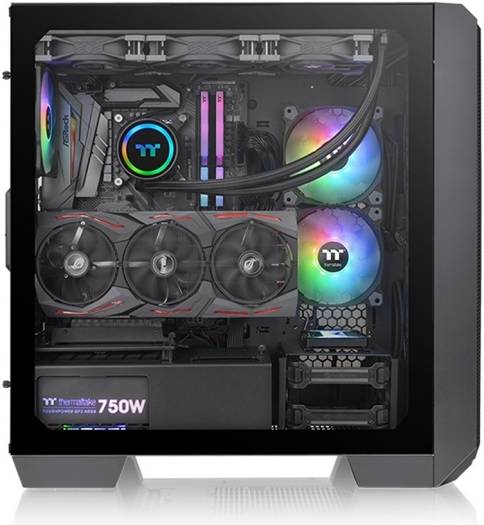 Designed to push the beloved View Series lineup to another level, the View 300 MX Mid-Tower Chassis features two pre-installed 200mm ARGB PWM fans in the front and one 120mm ARGB PWM fan at the rear to provide optimal cooling performance. Noteworthy, the View 300 MX series is the first chassis of the Thermaltake collection that comes with dual front panels, including a tempered glass panel and a perforated metal panel featuring the TT Logo, allowing users to choose their own style. Moreover, the View 300 MX features rotational PCI-E Slots, removable filters, a removable PSU cover, and supports up to E-ATX motherboards (12″ x 13″), up to a 360mm Radiator on the front, top and M/B side. These merits make the View 300 MX an eye-catching chassis that is ideal for you to make your next build epic, high-performing, and one of a kind. SKU: SKU-32BF97AF Category: Computer Cases Brand: Thermaltake