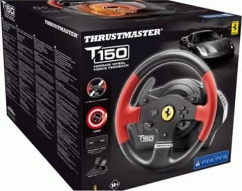 - Specifications: BrandThrustmasterSeriesRacing WheelsModelTM-WHL-T150FRARI-FFBSteering WheelDesignErgonomic, 28 cm Diameter DesignRubber Coated Wheel GripsButtonsBuilt-In Official PlayStation 4 ButtonsAccess Social Functions, Switch Between the Game and the System, and Navigate Through the Console's Menus, etc.Paddle Shifters2x Large, Wheel-Mounted Sequential Paddle Shifters13 cm Tall, 100% MetalTact Switch with Life Cycle Exceeding 500,000 ActivationsDriving GearComprehensive Driving Gear13x Action Buttons (2x on the Base) + 1 D-PadPedalsFeaturesLarge Optimized Pedal SetAdjustable Pedal Angle of InclinationBrake Pedal with Progressive ResistanceForce Feedback SystemDrive SystemDrive System with Adjustable Force Feedback Lets You Feel Every Detail While RacingFeel the Road or Track Relief, Loss of Tyre Grip, Braking, Bumps and Impacts, etc.RotationRotation Angle Adjustable From 270° – 1080°PrecisionOptical Reading with 12-bit Resolution (4,096 Values on the Wheel's steering Axis)GearsMixed Belt-Pulley and Gears SytemSmoother, More Fluid and Less Noisy Than Helical Gears with Metal Ball-Bearing Axle for Enhanced SturdinessFirmwareInternal Memory and Upgradeable FirmwareAttachment SystemRobust and Versatile Attachement System, Compatible with All Mounts (Desks, Tables, etc.)GeneralCompatibilityPC, Playstation 3, PlayStation 4Paddle Shifter Height130 mmWheel Diameter280 mmWheel Weight700 g