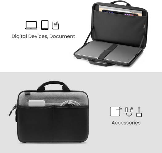 Tomtoc A25F2G2 Hardshell Laptop Shoulder Case, Fits 16″ Laptop, Built-in Belt With Magic Strap, EVA Hard Shell Exterior, Water Repellent Fabric, Outsi