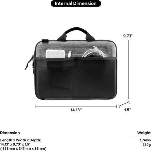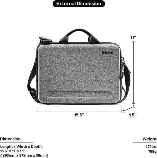 Tomtoc A25F2G2 Hardshell Laptop Shoulder Case, Fits 16″ Laptop, Built-in Belt With Magic Strap, EVA Hard Shell Exterior, Water Repellent Fabric, Outside Pockets, YKK Zippers, Gray | A25F2G2