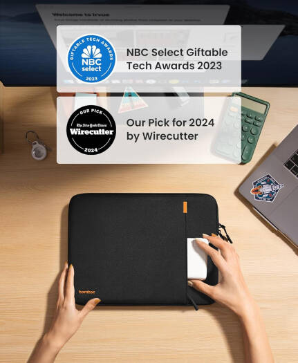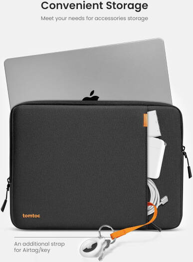 Tomtoc Defender-A13 Laptop Sleeve, 13″ MacBook/Surface Laptop, 360 Degree Protection with Patented CornerArmor, Durable Recycled Fabric, YKK Zippers, Black | A13C2D1