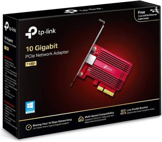 TP-Link 10 Gigabit PCI Express Network Adapter, CAT6A Ethernet Cable, Low-Profile and Full-Height Brackets, Supports Windows 11/10/8.1/8/7, Windows Servers 2019/2016/2012 R2, Linux | TX401
