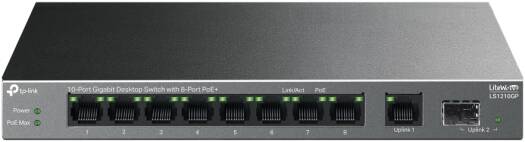 TP-Link 10-Port Gigabit Desktop Switch with 8-Port PoE+, 9x Gigabit Auto-Negotiation RJ45 Ethernet Ports & 1x Gigabit SFP Port Provide Up to 20 Gbps Switching Capacity, Black | LS1210GP
